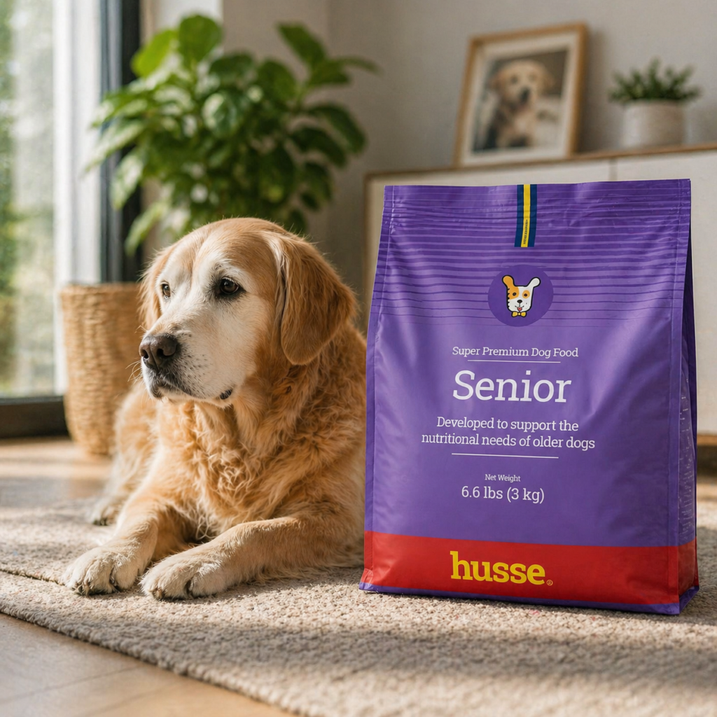 Husse Senior acompaña a tu perro en esta etapa con la nutrición que su cuerpo necesita para seguir activo, cómodo y feliz por mucho más tiempo.